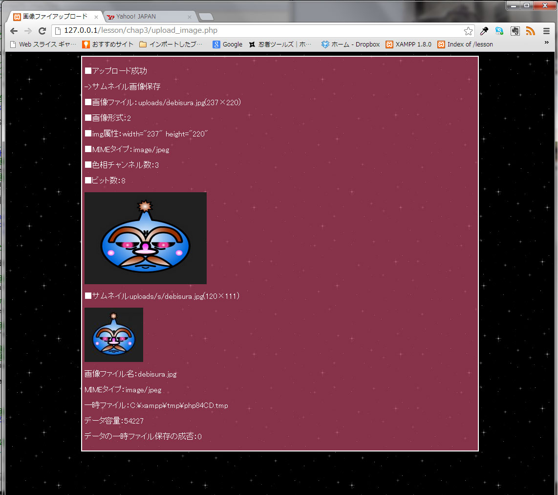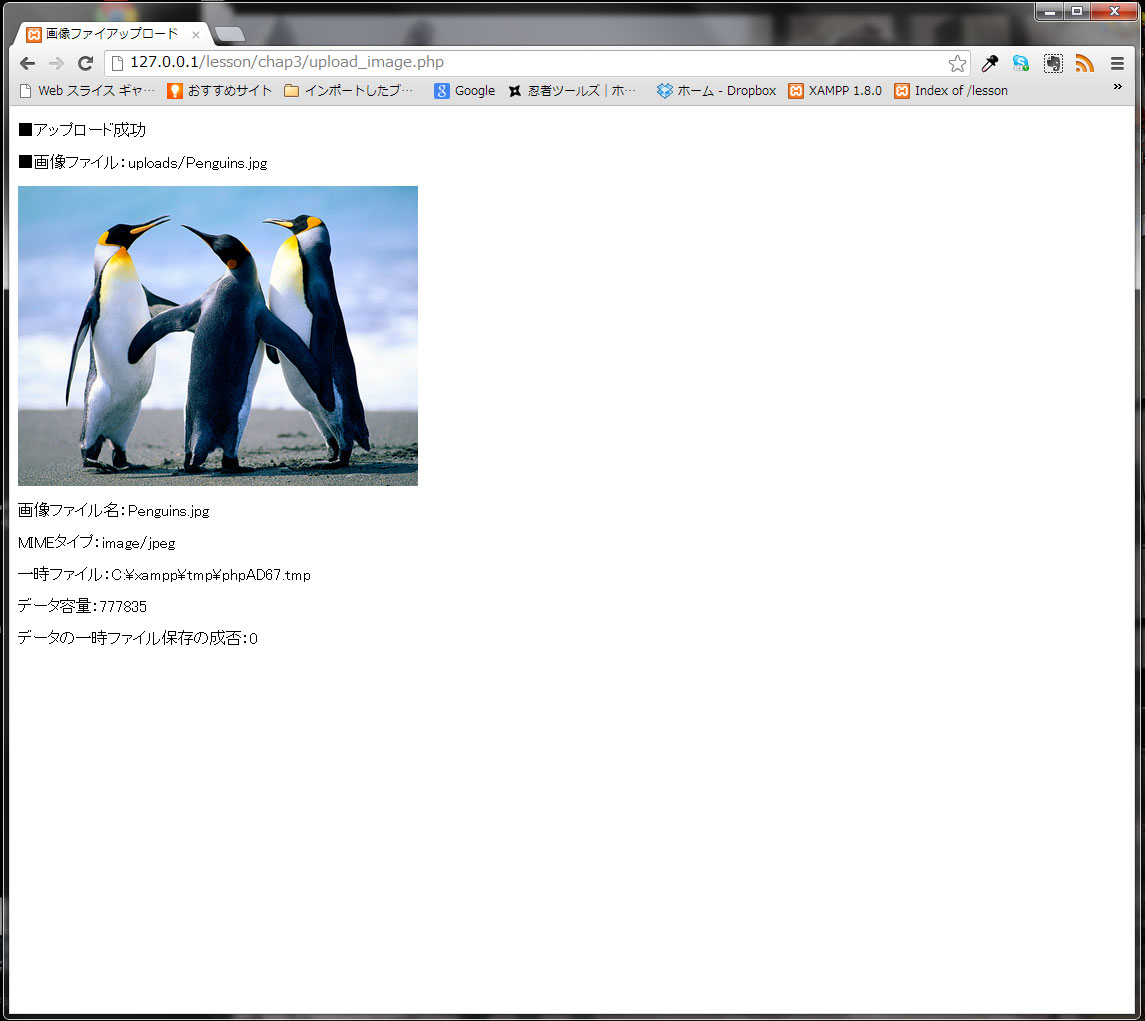 ここまでの流れがうまくいくと、サーバーに画像をアップロードすると